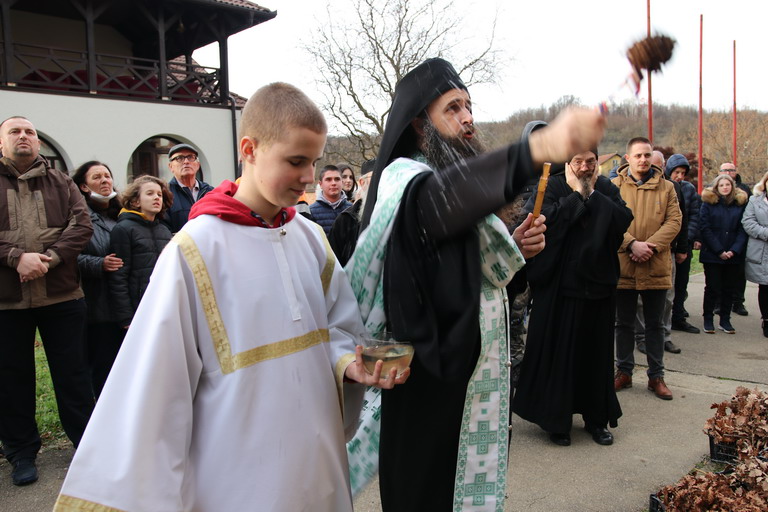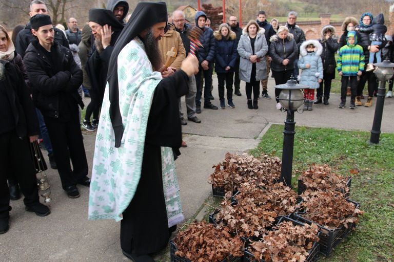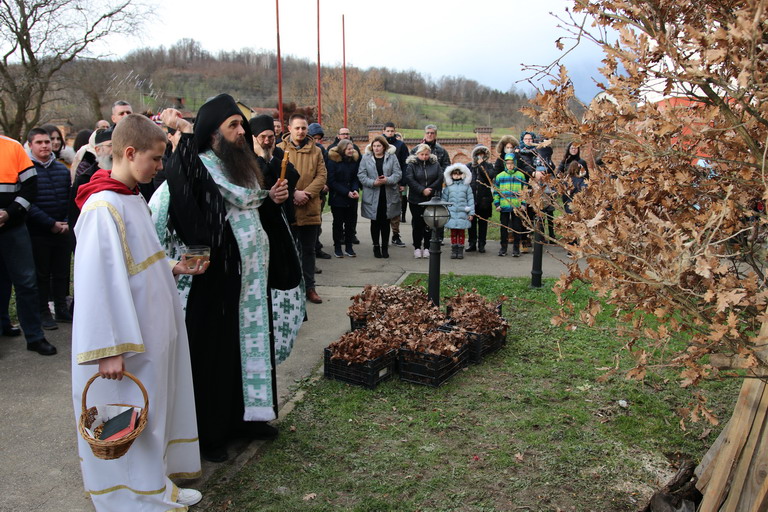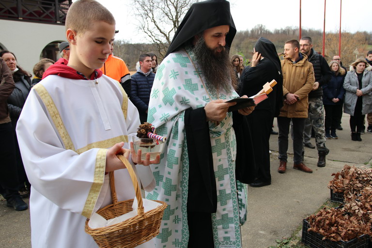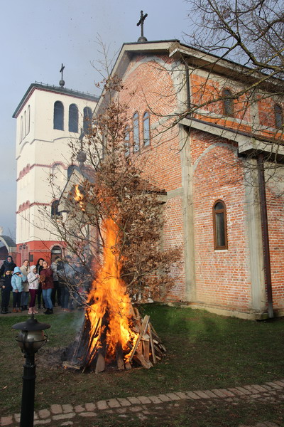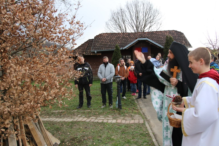 У послијеподневним часовима пристигли бадњаци традиционално су посути кукурузом, а затим и освећени, да би потом били налагани, након што су вјерници, на благослов, узели гранчице које су понијели у своје домове.