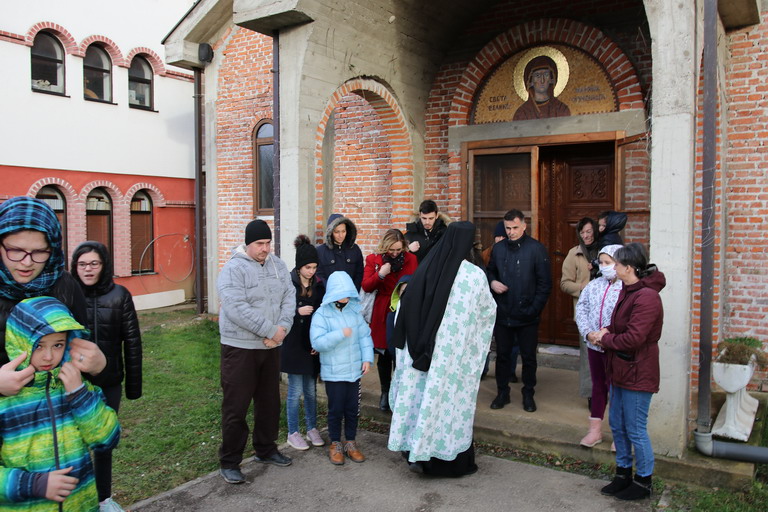 Након освећења и налагања бадњака, у манастирском храму одржано је пијукање за најмлађе, а потом и вечерње богослужење.