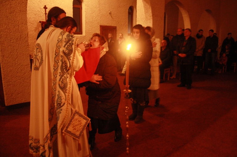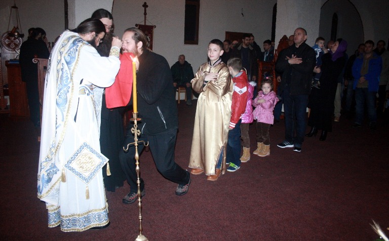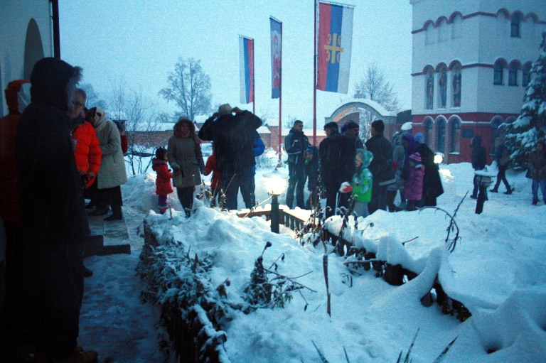 Празничну радост вјерници, заједно са манастирским братством, изразили су цјеливима љубави, честитајући празник једни другима сверадосним поздравом „Мир Божији – Христос се Роди“.