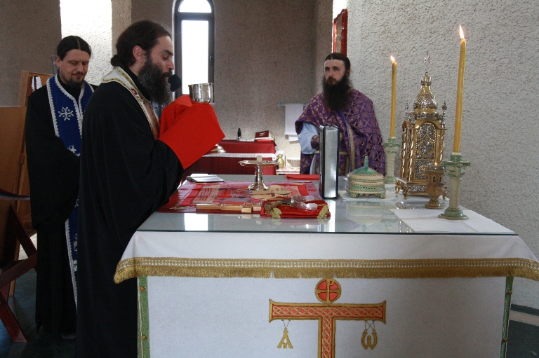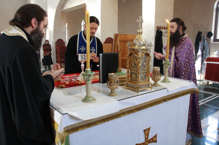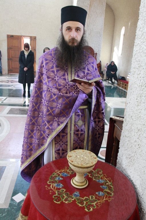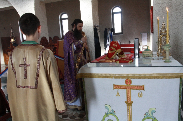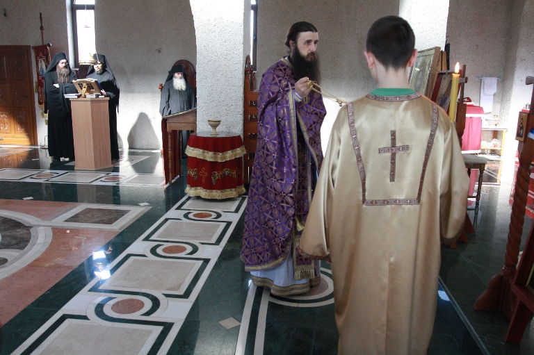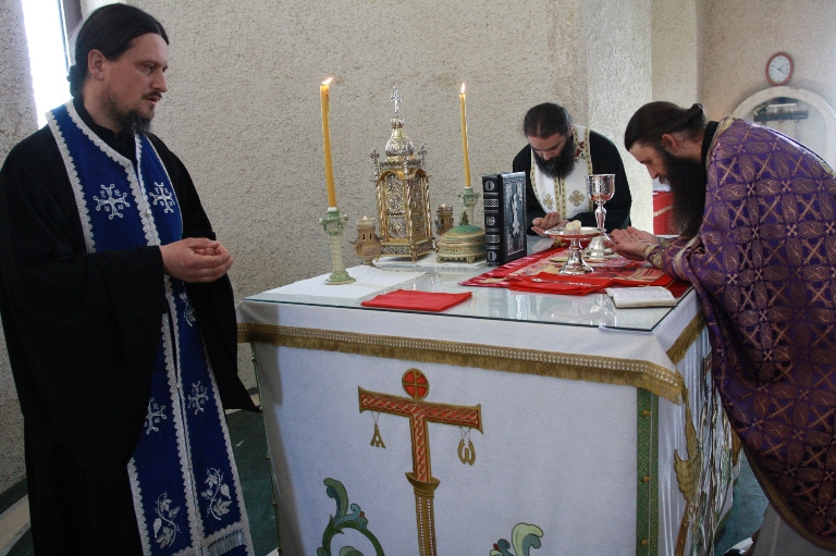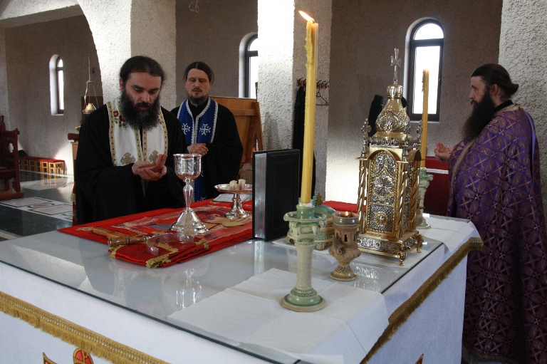 Литургију Пређеосвећених Дарова служио је настојатељ наше Свештене Обитељи, игуман Василије (Рожић). У Литургији је, поред манастирског братства, учешће узело монаштво из манастира Епархије бихаћко-петровачке, и то: архимандрит Серафим, настојатељ манастира Рмањ; архимандрит Варнава, намјесник манастира Трескавац; игуман Теофил, намјесник манастира Глоговац, као и монах Стефан, такође из манастира Глоговца.