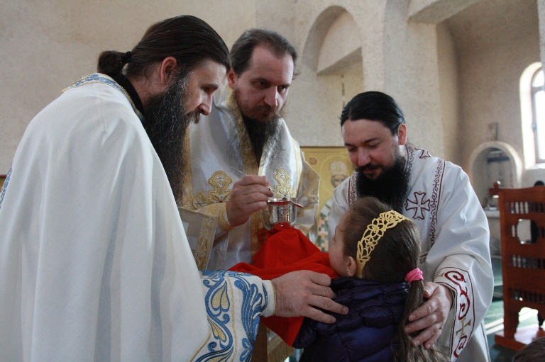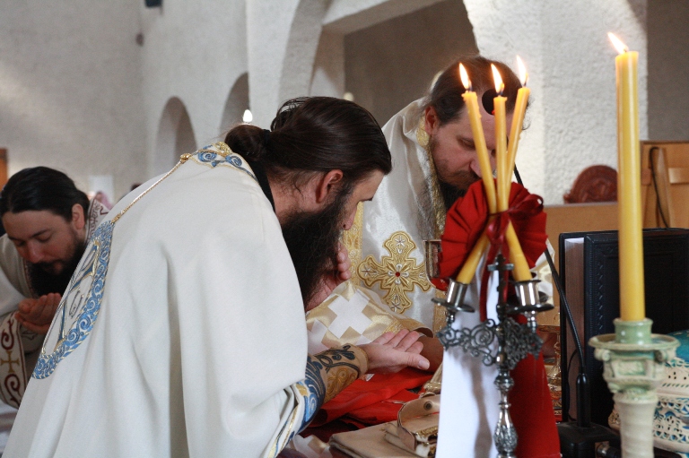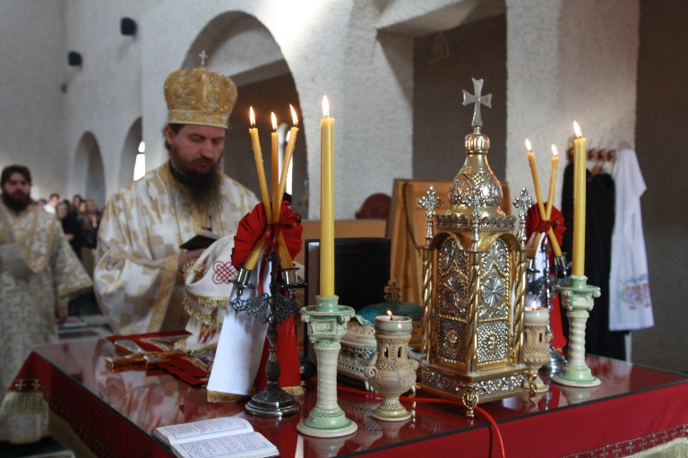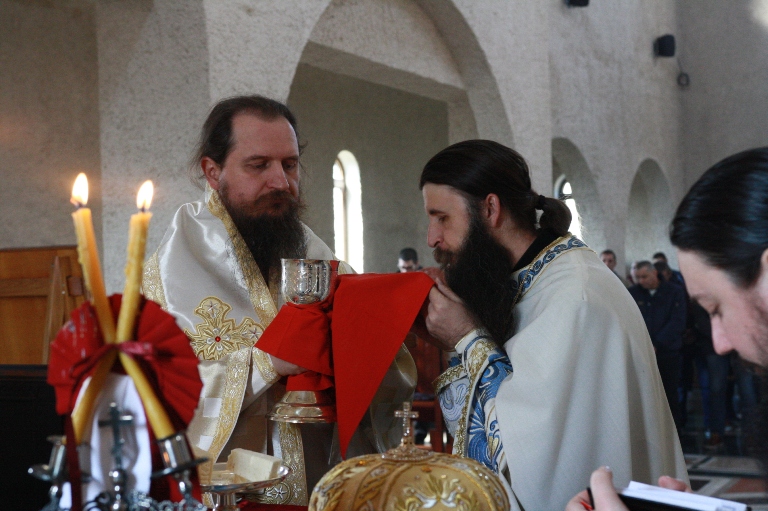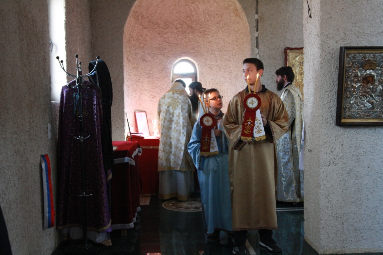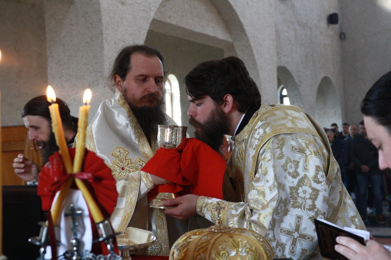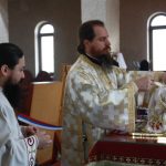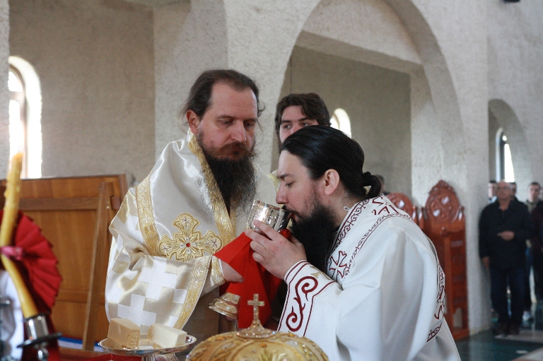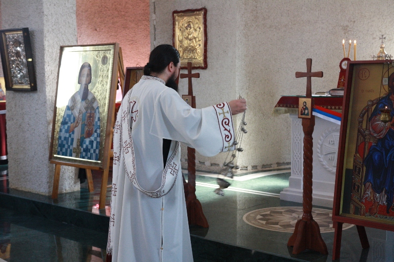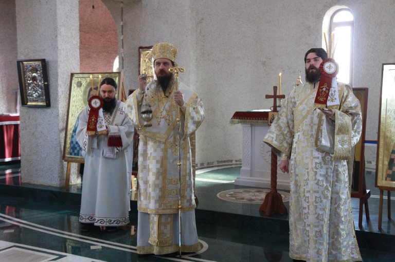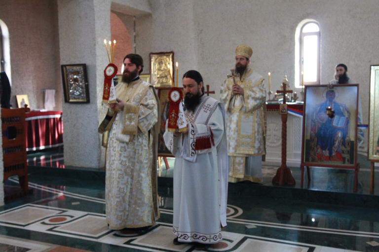 Саслуживали су, игуман Василије (Рожић), настојатељ манастира, ђакон Немања Рељић и јерођакон Данило (Иваниш).