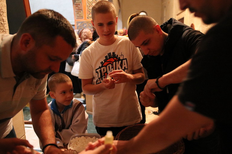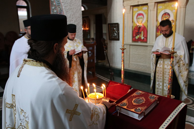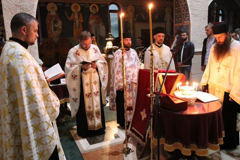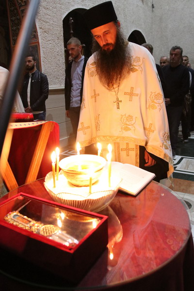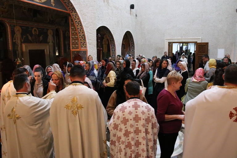 У препуном Храму, Свету Тајну Јелеосвећења служило је седам свештеника на челу са оцем Василијем, игуманом наше свештене обитељи.