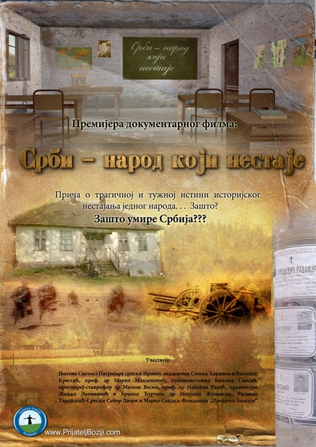 Документарни филм под називом „Срби – народ који нестаје“, у продукцији Фондације „Пријатељ Божји“, представља једно од најбољих остварења савременог документарног филма, јер се на врло описан, документован и крајње истинит начин предочава трагична и тужна истина о српском народу, који је на путу свог историјског нестајања. Наиме, историјском ретроспективом прошлог вијека, вјерно се приказује почетак нестајања, с обзиром да су Срби кроз осам ратова изгубили четири милиона становника у најбољем репродуктивном узрасту. Даље се наводе многи асимилативни процеси, у којима су Срби губили, и још увијек губе, свој национални идентитет.