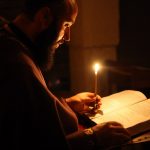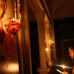 А у храму св`јеће тихим пламом горе,