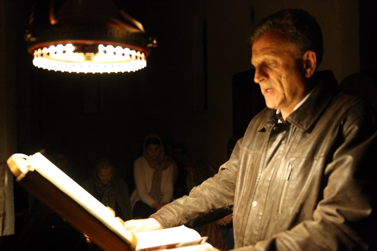 Испред двери царских, у одежди црној,