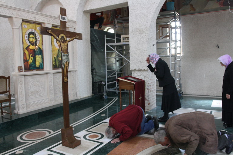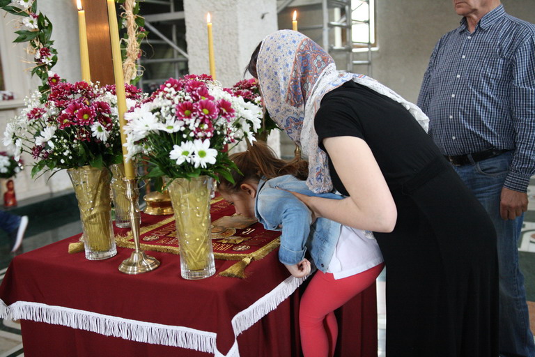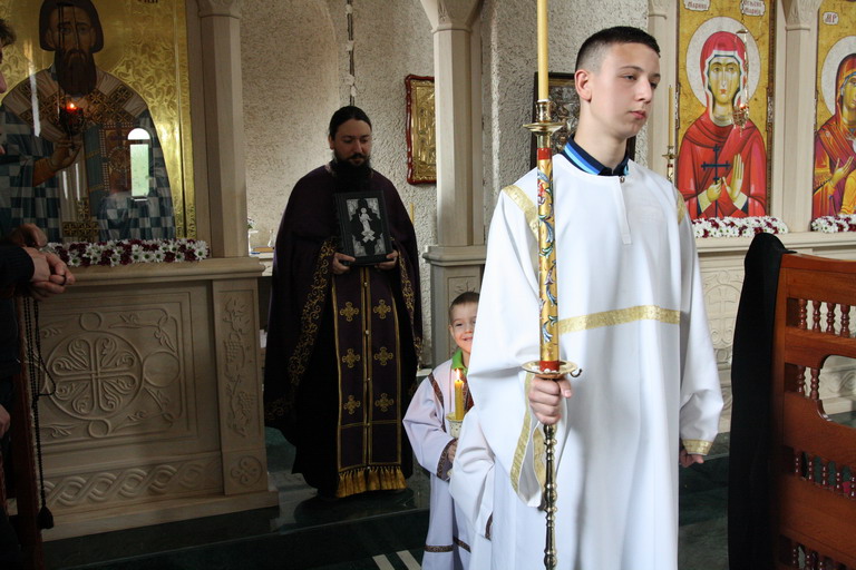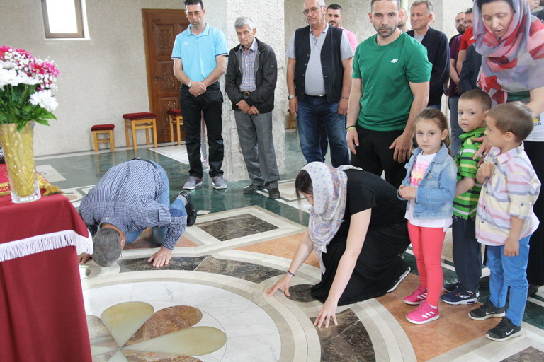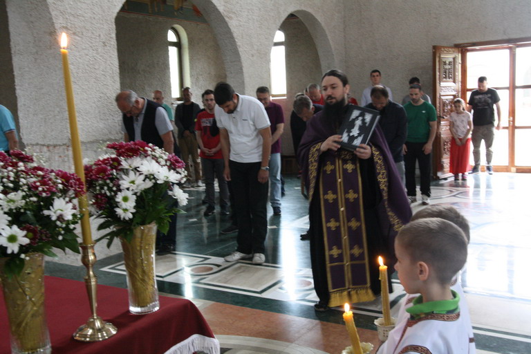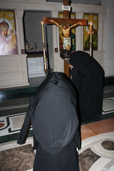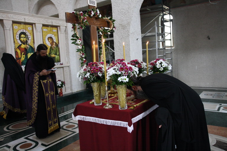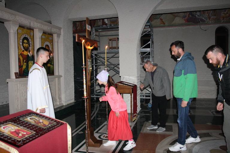 Окупљени вјерници, заједно са манастирским братством, цјеливали су Плаштаницу и Јеванђеље, поклањајући се Богу Који је сишао међу људе, постајући један од њих, да бисмо ми постали богови, не по суштини већ по благодати.