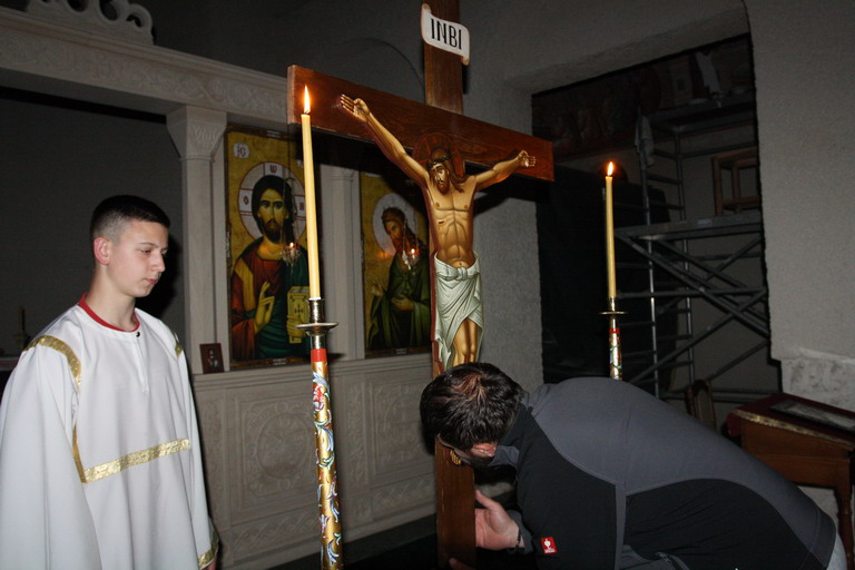 На Велики Петак, у јутарњим сатима, служени су Царски часови, док је у послијеподневним часовима изнешена Плаштаница, која симболизује Христово скидање са Крста и полагање у гроб, из којег ће изнићи нови живот цјелокупном људском роду.
