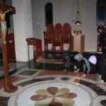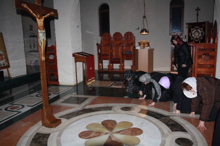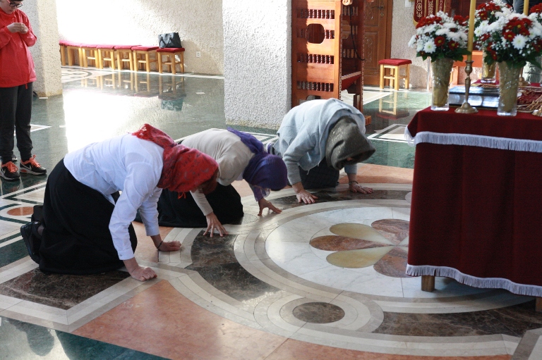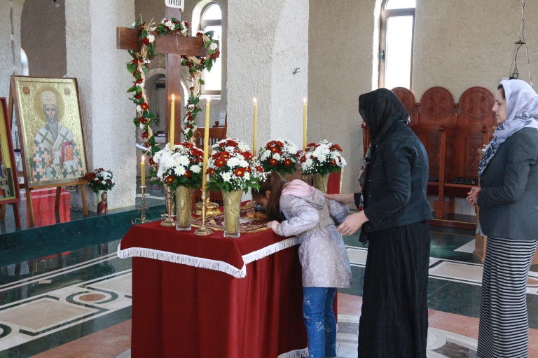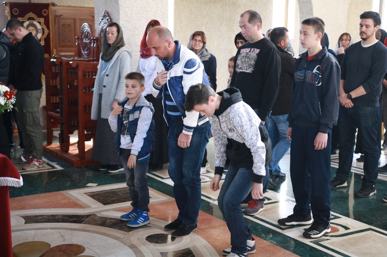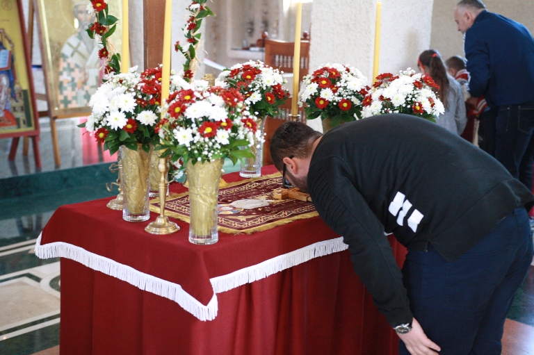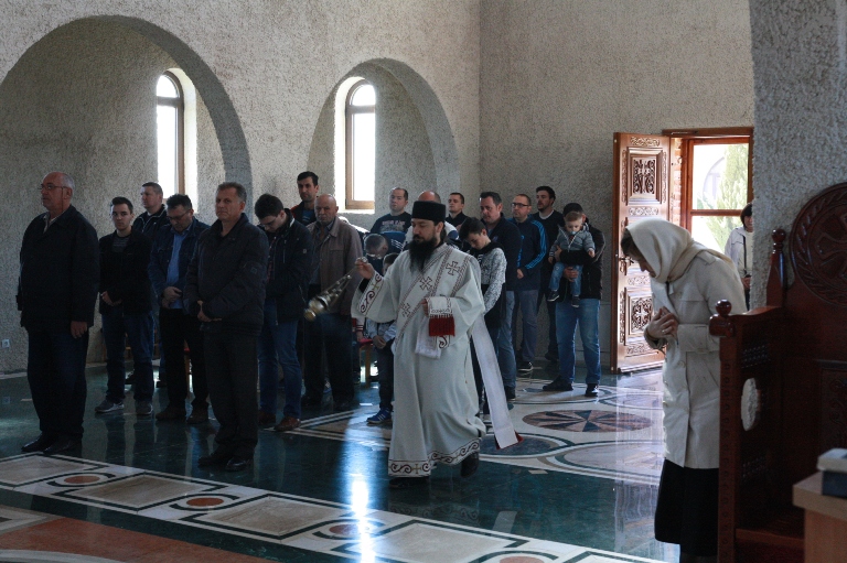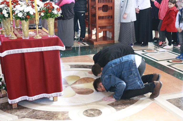 Окупљени вјерници, заједно са манастирским братством, цјеливали су Плаштаницу и Јеванђеље, поклањајући се Богу Који је сишао међу људе, постајући један од њих, да бисмо ми постали богови, не по суштини већ по благодати.