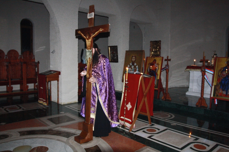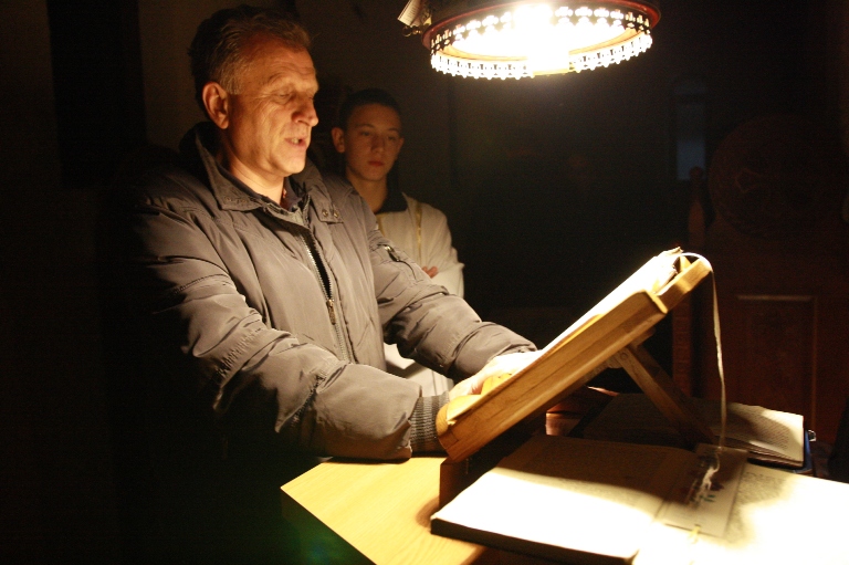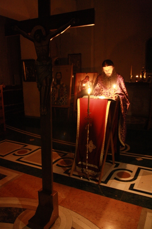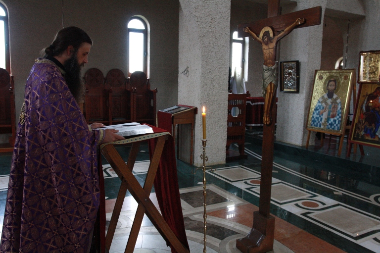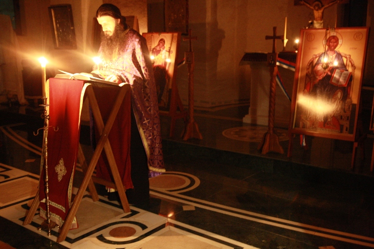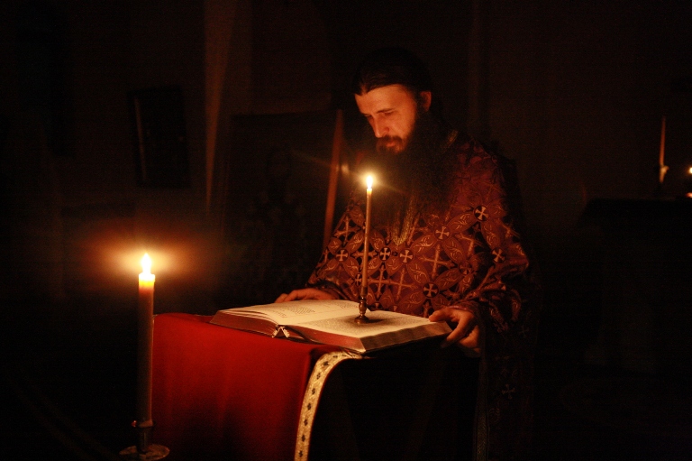 Испред двери царских, у одежди црној,