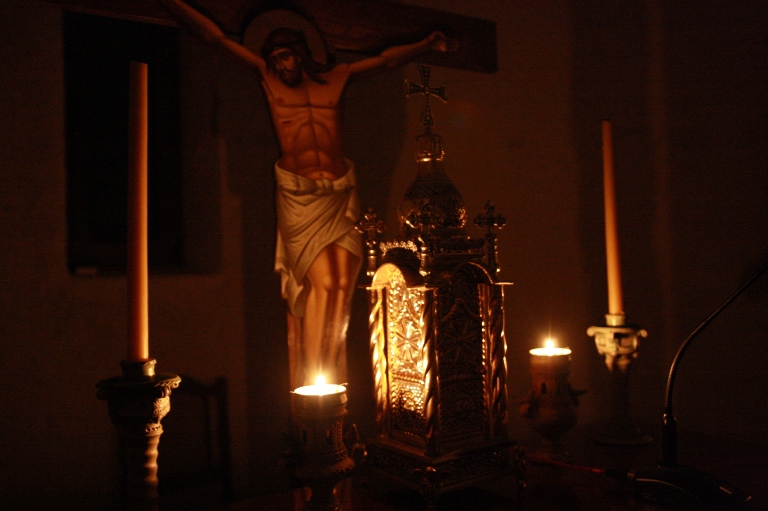 А у храму св`јеће тихим пламом горе,