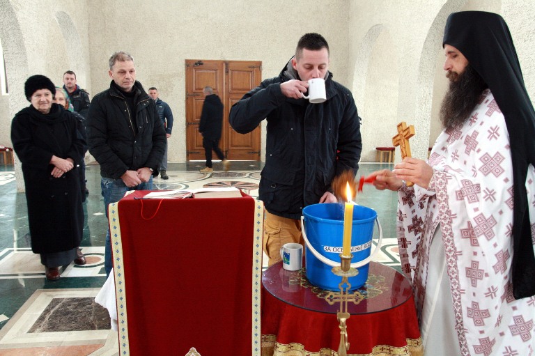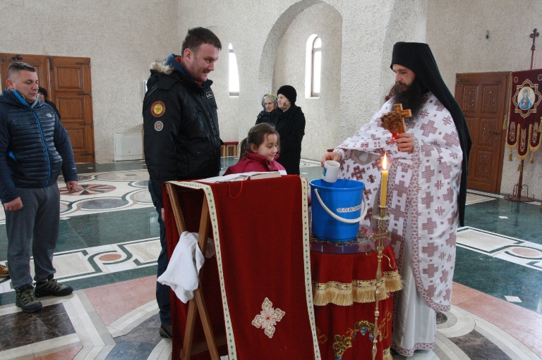 Вјерници су, симболично, својим домовима понијели флашице са освећеном водом, да би богојављенску радост јављања сва три Лица Свете Тројице пренијели и у своје домове.