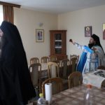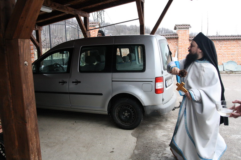 Након Свете Литургије, уз појање богојављенског тропара “Во Јорданје“, кађење и кропљење, свештенослужитељ и братија обишли су све просторије манастирског конака.