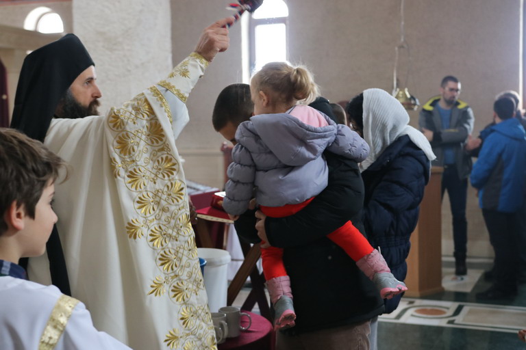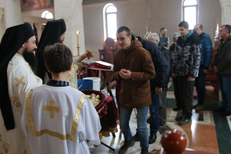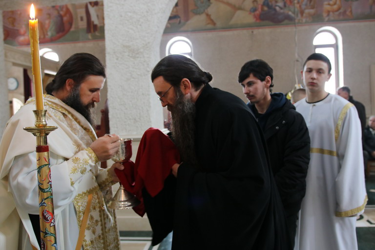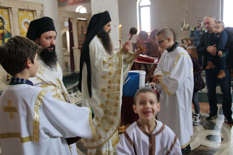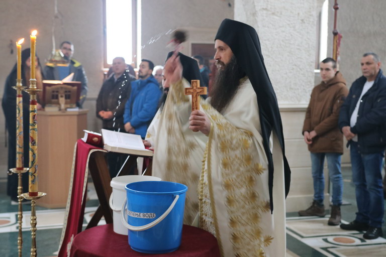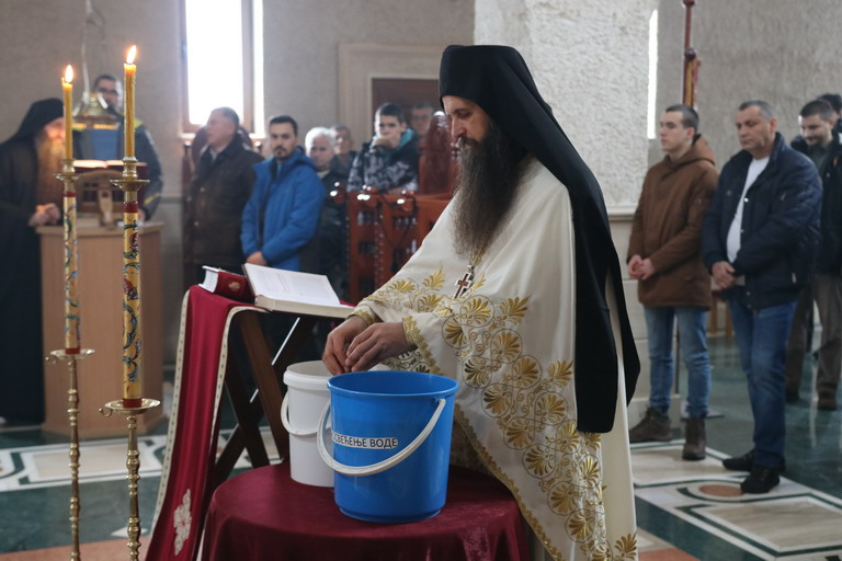 Након Свете Литургије, уз појање богојављенског тропара “Во Јорданје“, кађење и кропљење, свештенослужитељи и братија обишли су све просторије манастирског конака.