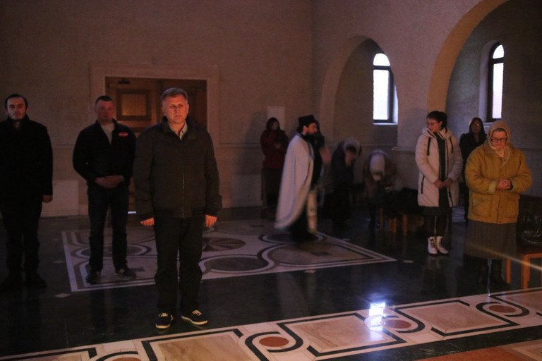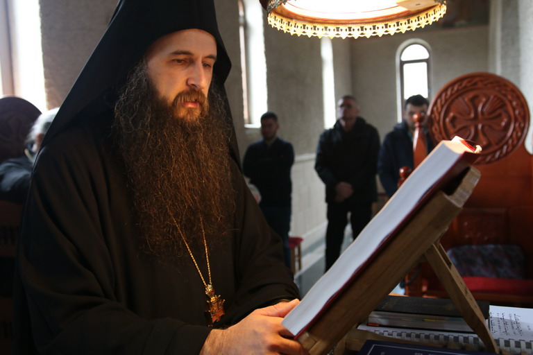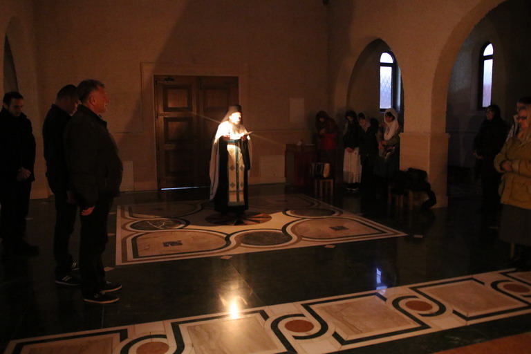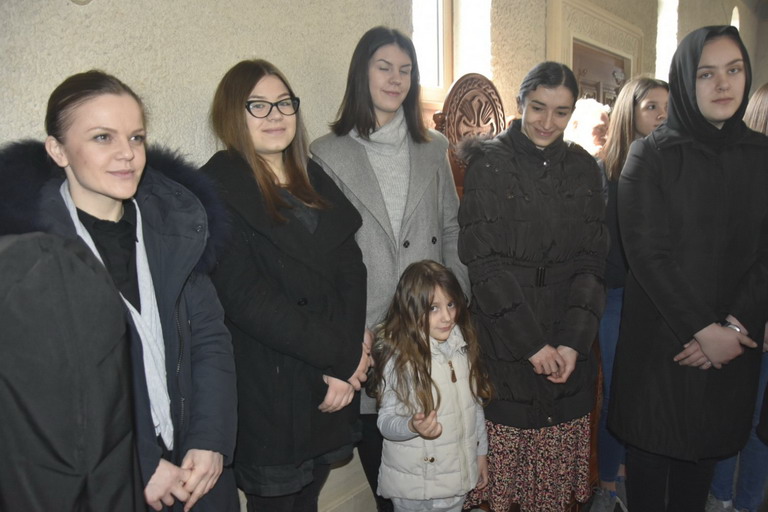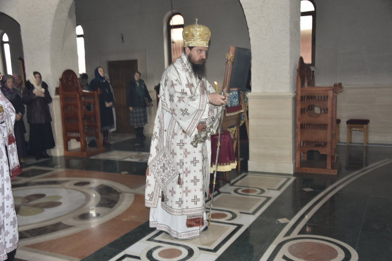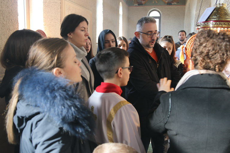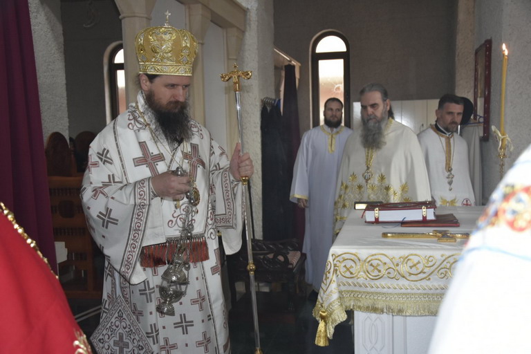 Послије прочитаног јеванђелског зачала из Јеванђеља по Луки које говори о овоме догађају који се збио прије пуних двије хиљаде година, Епископ је изговорио надахнуту бесједу о данашњем Празнику када се човјек сусреће са Богом. Овај Празник нам на видљив начин открива тај богочовјечански сусрет који се одвија свакодневно на Светој Трпези са које се излива благодат Божија и дарује се Тијело Христово које нас обожује и дарује живот вјечни.