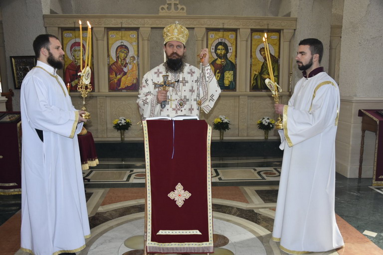 Владици су саслуживали: архимандрит Варнава (Дамјановић), настојатељ Манастира Трескавца, игуман Јеротеј (Влајковић), духовник Манастира Медна, јеромонах Методије (Крагуљ), духовник Манастира Гомионице, протопрезвитер-ставрофор Карађорђе Дерајић парох оштролучки и протођакон Немања Рељић, епархијски ђакон.