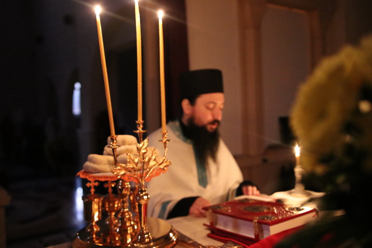 У навечерје Празника Сретења Господњег, служена је велика вечерња служба са петохљебницом.