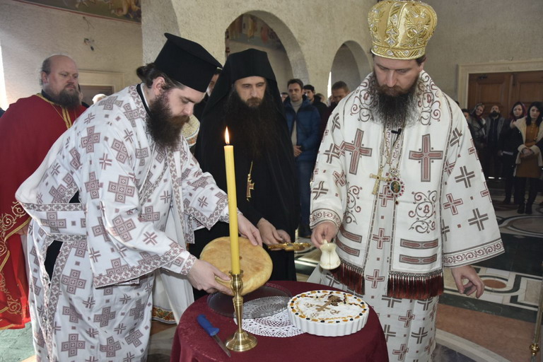 По заамвоној молитви извршен је чин благосиљања славског колача и кољива јер се сматра да је данашњи Празник Сретења Господњег био у давно вријеме слава ове свештене Обитељи.