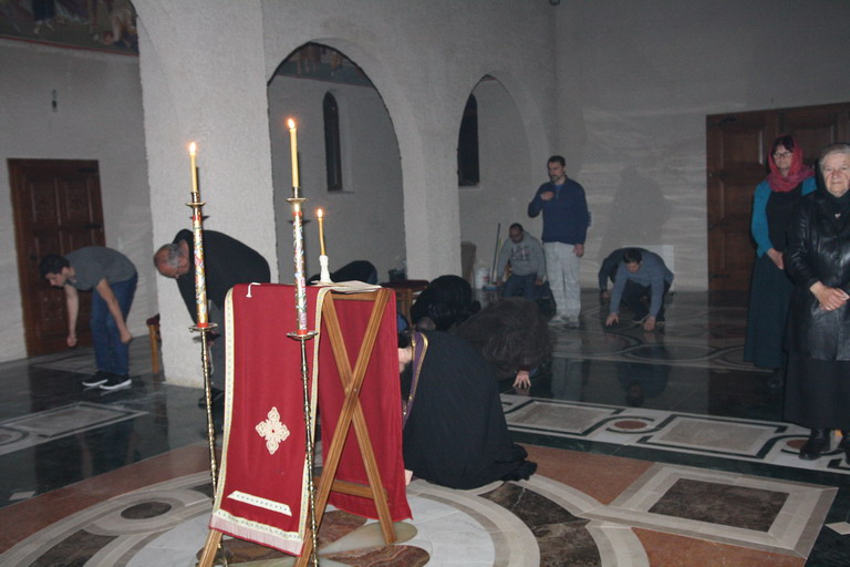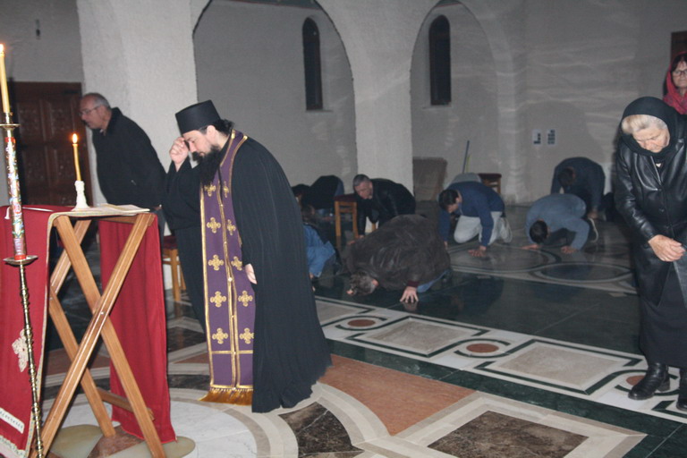 У Саборном манастирском храму Свете Великомученице Марине, у присуству манастирског братства и вјерног народа, служено је Прво бденије, током којег је читан покајни канон Светог Андреја Критског и Житије Свете Марије Египћанке.
