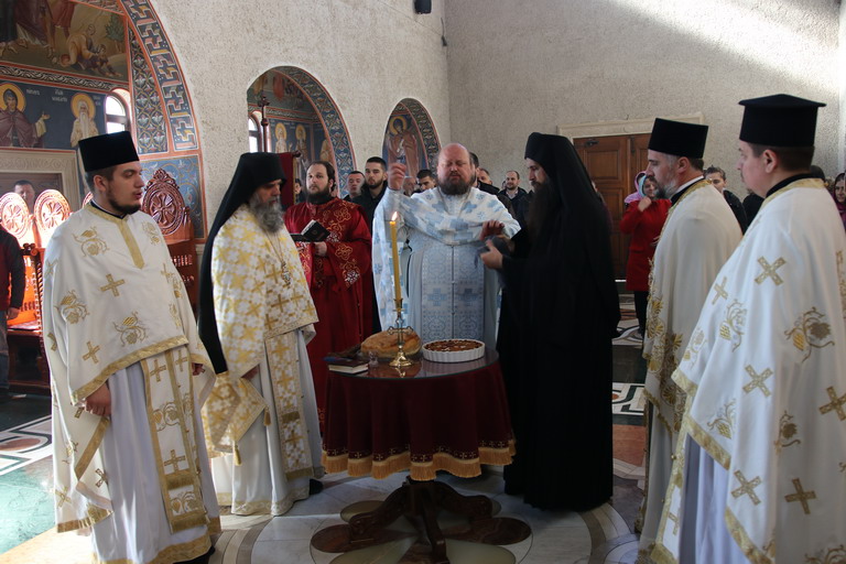 Служена је велика вечерња са петохљебницом уочи Празника а на дан Празника свечано јутрење са Литургијом којом је началствовао архимандрит Варнава (Дамјановић).