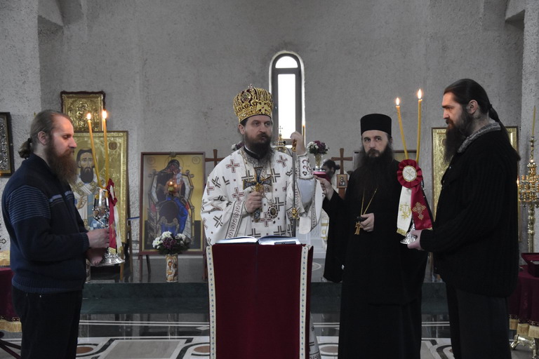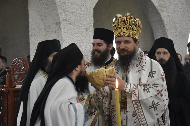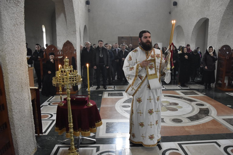 Епископ Сергије је у својој литургијској бесједи поучио присутни народ о значају данашњег празника, празника када се сусреће небо и земља, сусреће се Господ са човјеком, тога ради похитајмо у наручје Господа нашег Исуса Христа, као што је у оно вријеме Он, предвјечни Бог благоизволио да буде држан у рукама старца Симеона.
