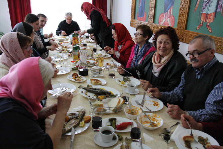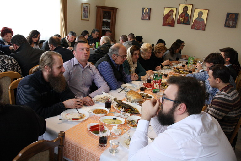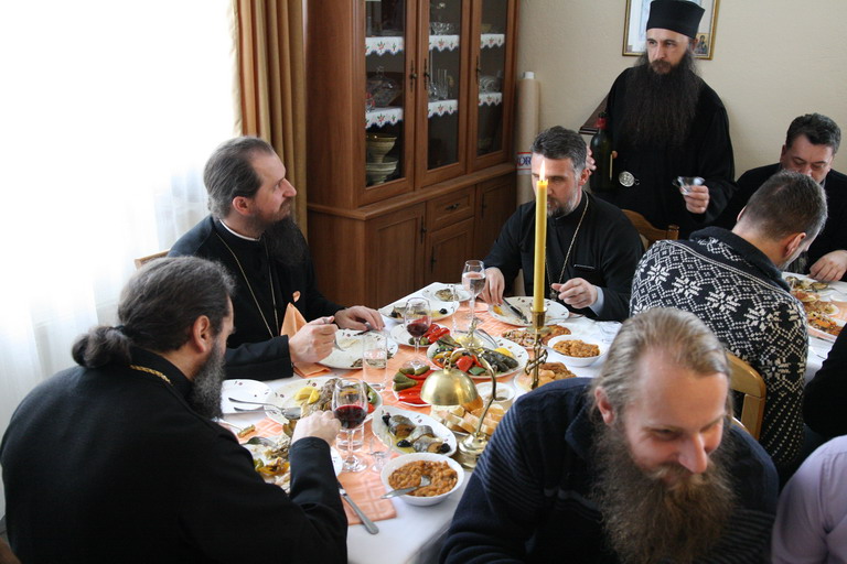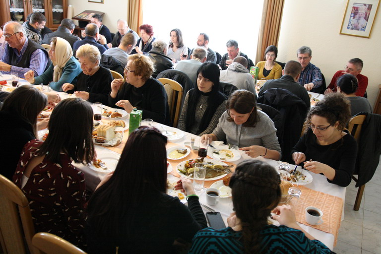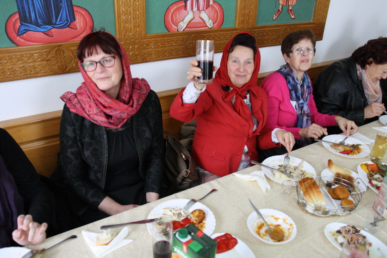 Послије заамвоне молитве освећени су славски колач и кољиво а послужење за вјерни народ, живу Цркву Божију припремљено је у конаку Манастира.