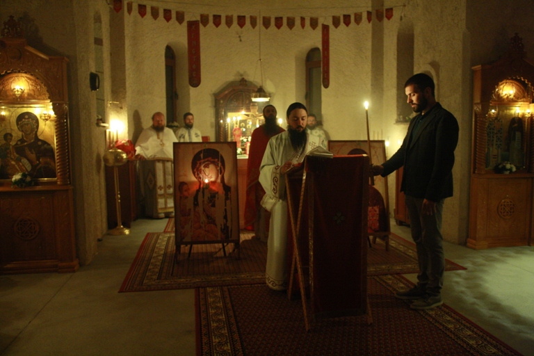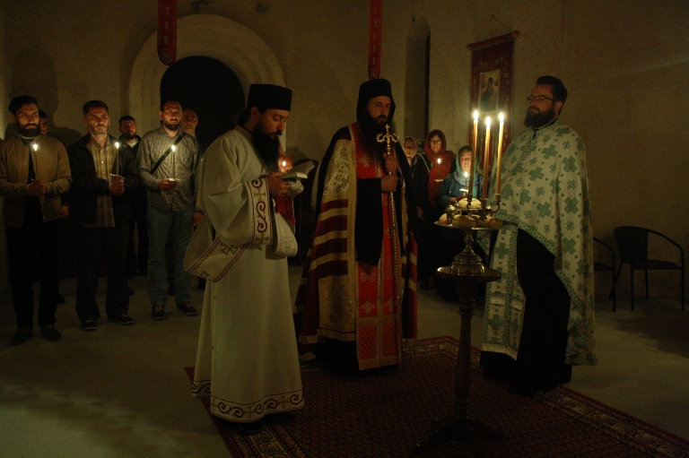 У Светоархангелском манастиру Трескавац, који је молитвама васкрснут из пепела нашег заборава, уочи празника Преноса моштију Светог Оца нашег Саве Српског, започело је Свеноћно бденије, у оквиру којег је служено вечерње богослужење са петохљебницом, затим јутарње богослужење, а напосљетку и Света Литургија.