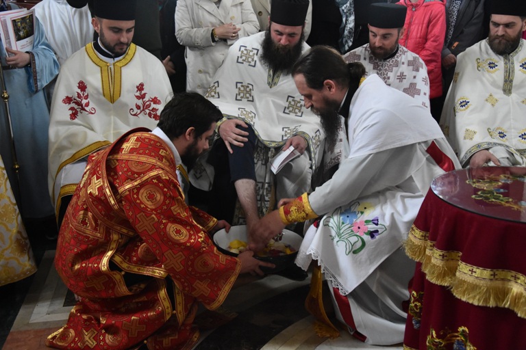 Након Свете Тајне Причешћа, Епископ Сергије извршио је Обред омивања ногу, по узору на самог Христа Господа, Који је Својим ученицима опрао ноге на Велики Четвртак, поучавајући их да „имају љубав међу собом“ (Јн. 15, 12).