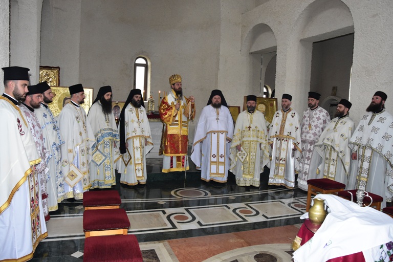 Литургијом је началствовао Његово Преосвештенство Епископ бихаћко-петровачки Господин Сергије, а саслуживали су му архимандрити: Серафим (Кужић) и Варнава (Дамјановић); игуман Василије (Рожић); протојереји-ставрофори: Петар Миловац, Чедомир Арамбашић, Саво Јанковић, Карађорђе Дерајић и Здравко Богојевић; протојереј Далибор Ненић; протонамјесници: Невен Маринковић, Бошко Максимовић и Јован Бањац; ђакони: Немања Рељић и Дејан Грчић, те јерођакон Данило (Иваниш).