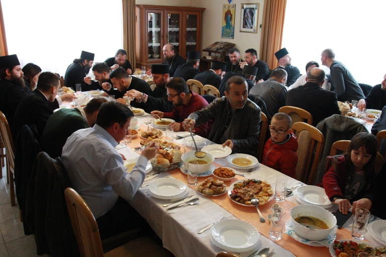 Након богослужења, за све присутне приређена је трпеза љубави у трпезарији манастирског конака.