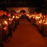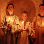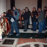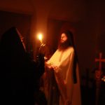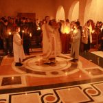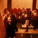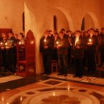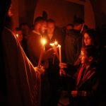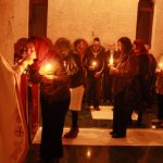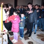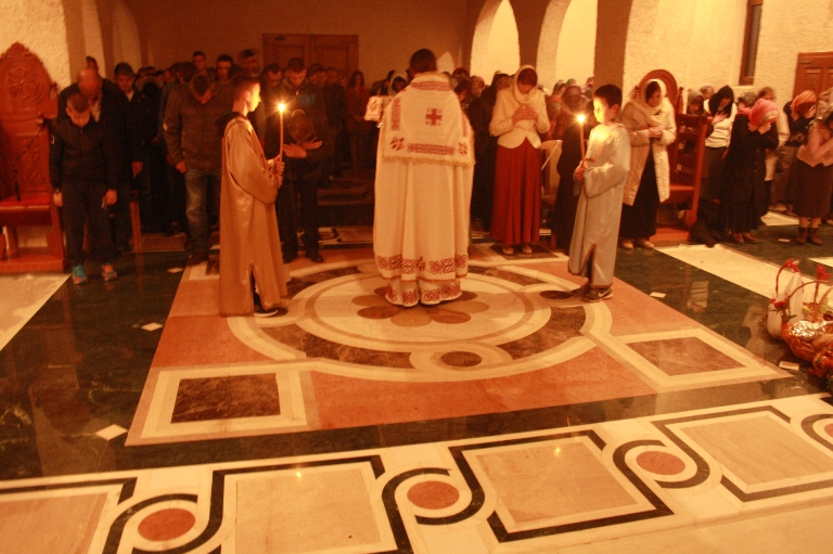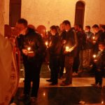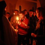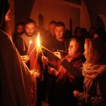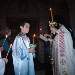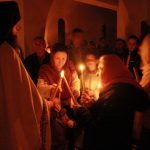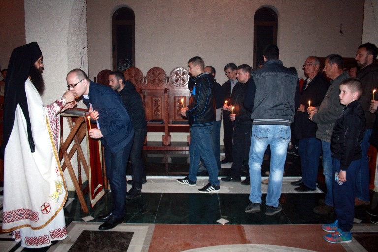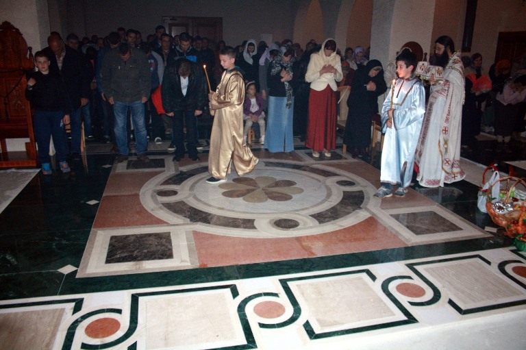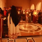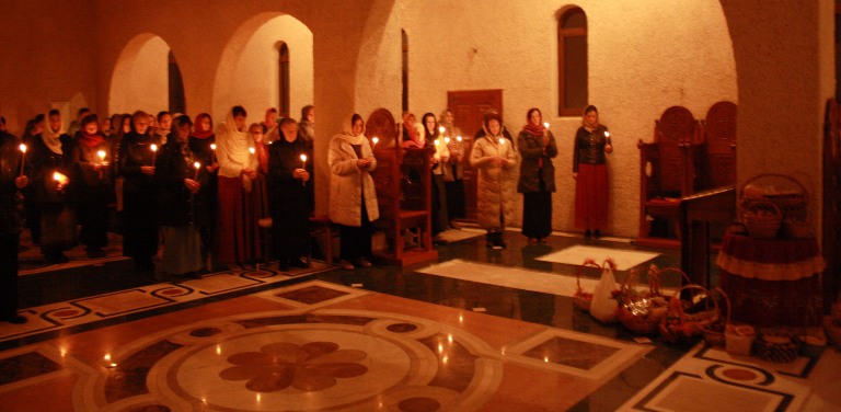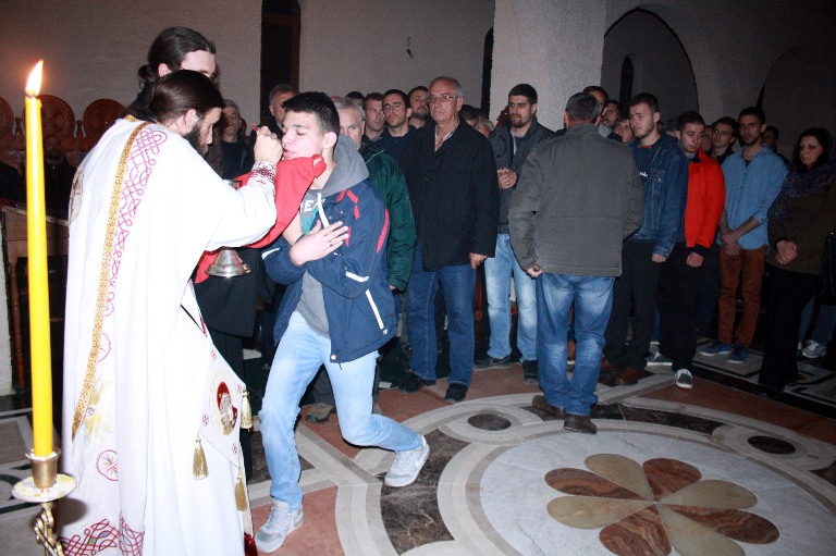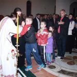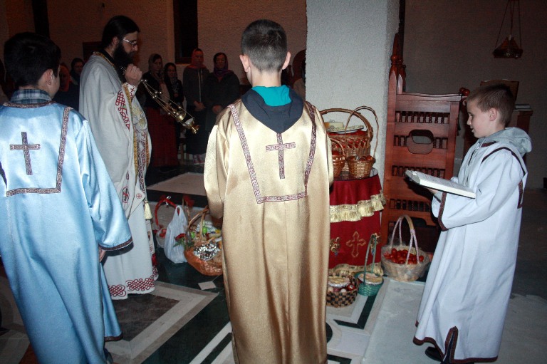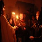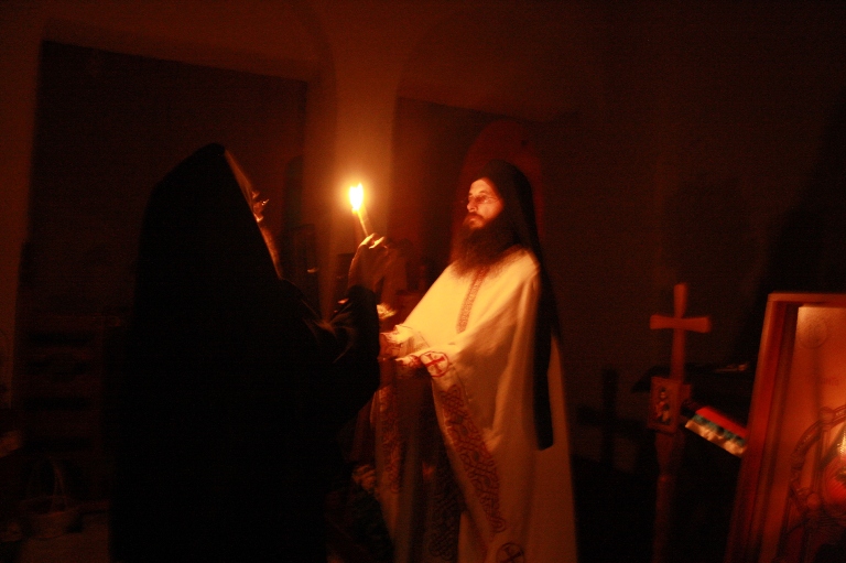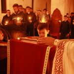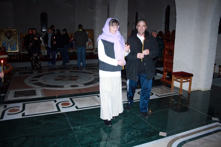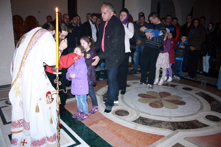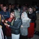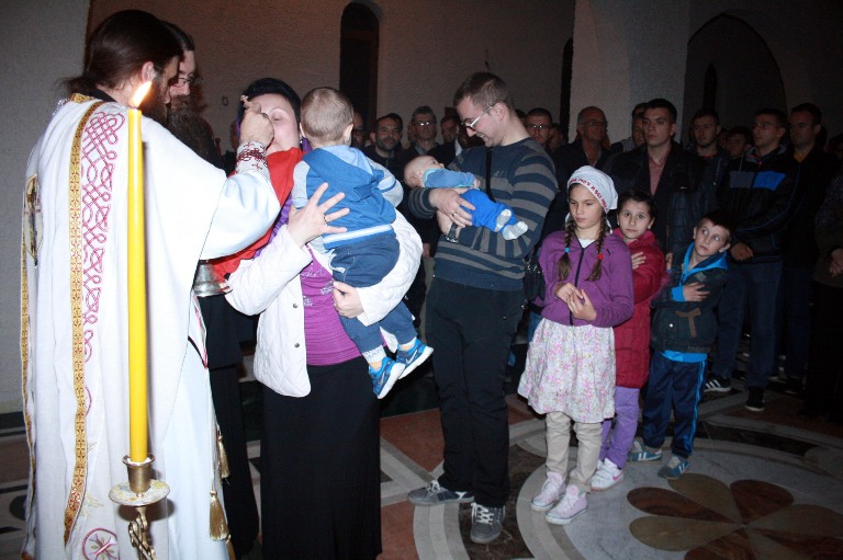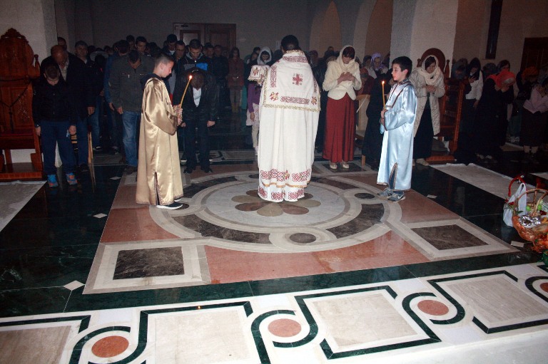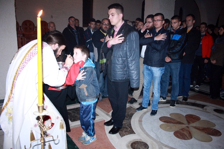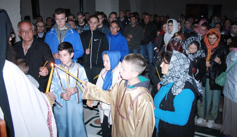 Тачно у поноћ звона са манастирског звоника огласила су почетак Васкршњег јутрења у Саборном манастирском храму Свете Великомученице Марине, у чијем наставку је служена Васкршња Литургија.