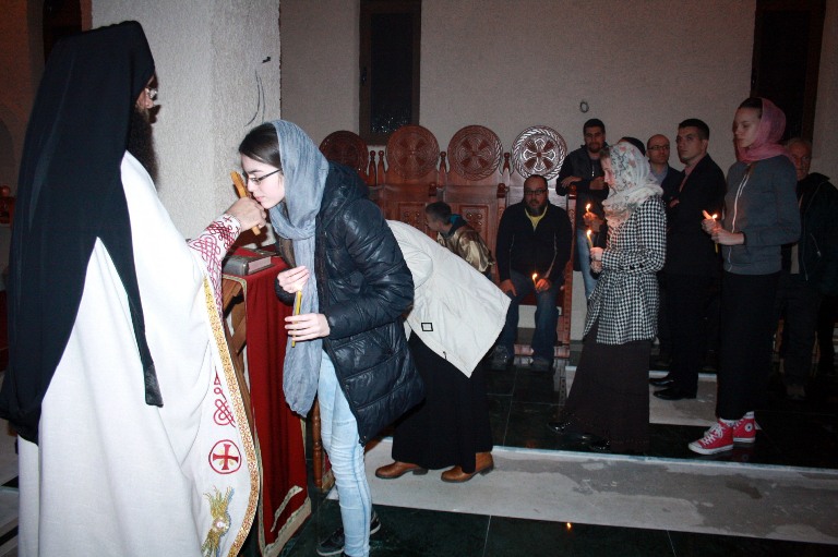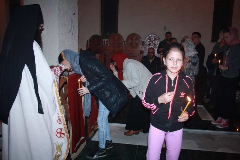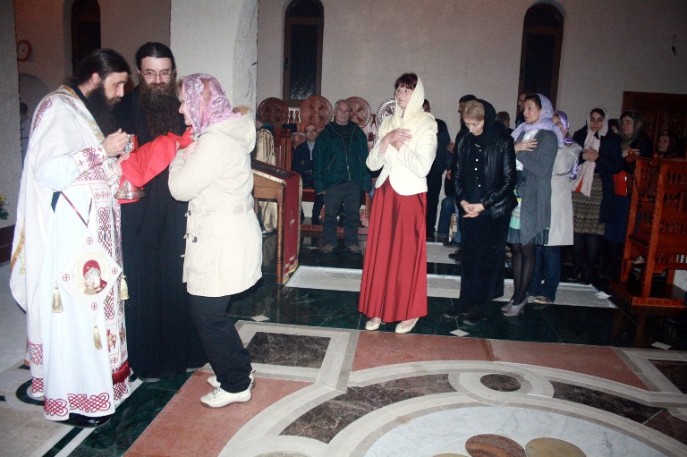 Свету Литургију служио је настојатељ настојатељ наше Свештене Обитељи, високопреподобни игуман Василије (Рожић), док је богослужење, за пјевницом, између осталих, увеличала Хилда Хрекес, православна вјерница из Сирије.